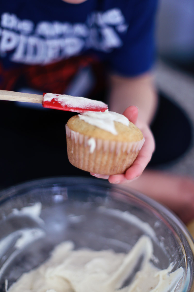 And then the frosting that was attached to the banana muffins was a cream cheese frosting. I was all out of cream cheese so I used a banana frosting instead (see recipe below) but I bet the cream cheese one would have been amazing! That recipe called for 8 oz of cream cheese, 1/2 cup butter, 2 tsp vanilla and 1 tbsp milk + 2-3 cup confectioners’ sugar. Cream cheese and butter, beat in vanilla and milk and then add sugar gradually. Again — so sorry I don’t have original sites. I feel so bad even posting these so if these sound super familiar to you please let me know and I’ll add credit!
