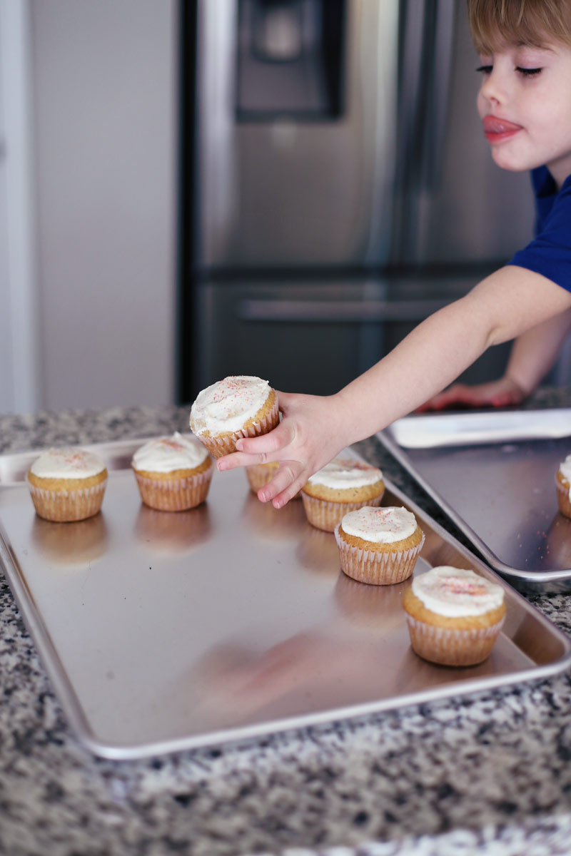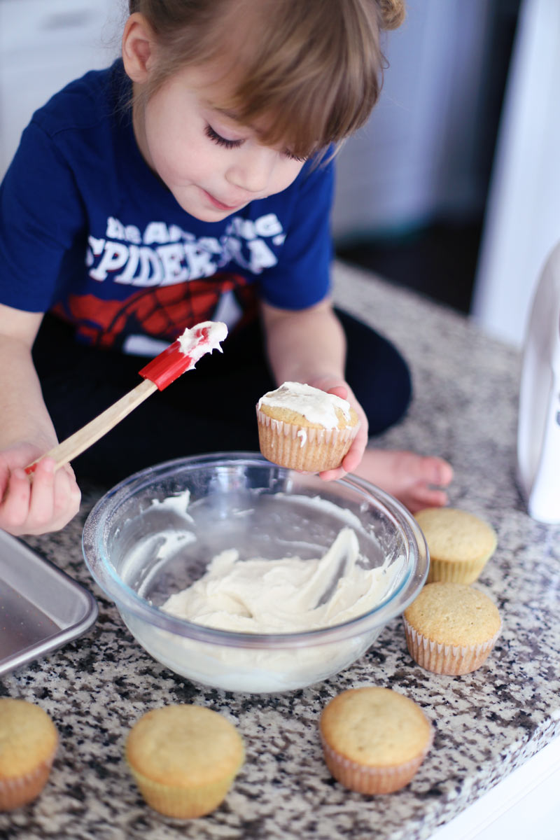Well little miss Savy Jane had her fourth birthday. I’m still in denial and don’t like to talk about it! For her classroom party at school we were asked to bring in something “healthy”… something with no dyes and no frosting. No cupcakes. If you follow me on snapchat (twistmepretty2) you know that I wasn’t happy about this! Savy has been so exited to celebrate her birthday at school all year long and she’s been perfecting her baking skills just for the occasion. Of course I had to be a rebel and we made some “healthy” banana bread that I let her frost anyway. I know the teachers were so grateful someone finally broke the rules! I’m mean c’mon! This isn’t the healthiest banana bread — I have a recipe that uses oats and apple sauce that I’ll share next time I make it –but I had to find some passive aggressive way to be annoyed haaahaha! This recipe was just for fun and it was DELISH!!!!