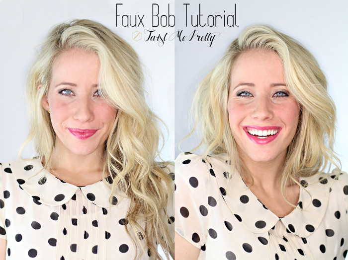 You Instagram/Facebook friends know that I’m dying to cut my hair! I’ve had long hair for so long I feel like it defines me. I will admit… there are times when I hide behind my long golden locks. A moment of insecure truth? Sometimes I feel like when my hair isn’t down and in my face that I’m less beautiful. And that’s silly. Beauty comes from the inside and the sparkle in your eyes. Hair should have absolutely nothing to do with it. But let’s be honest, hair is important. And for me it’s starting to define my beauty. So I’ve been thinking long and hard about chopping off my length. I think I’d regret it though… like bad. In lieu of my insecurities, I decided to try a little faux bob. A pretend haircut that hopefully helps me realize that I’m just as beautiful with short hair as I am with long. Do any of you feel the same way? Or am I nuts?! I’d love to hear your thoughts in the comments below! If I did cut my hair… just think of all the new styles we could try… haha just sayin’!
